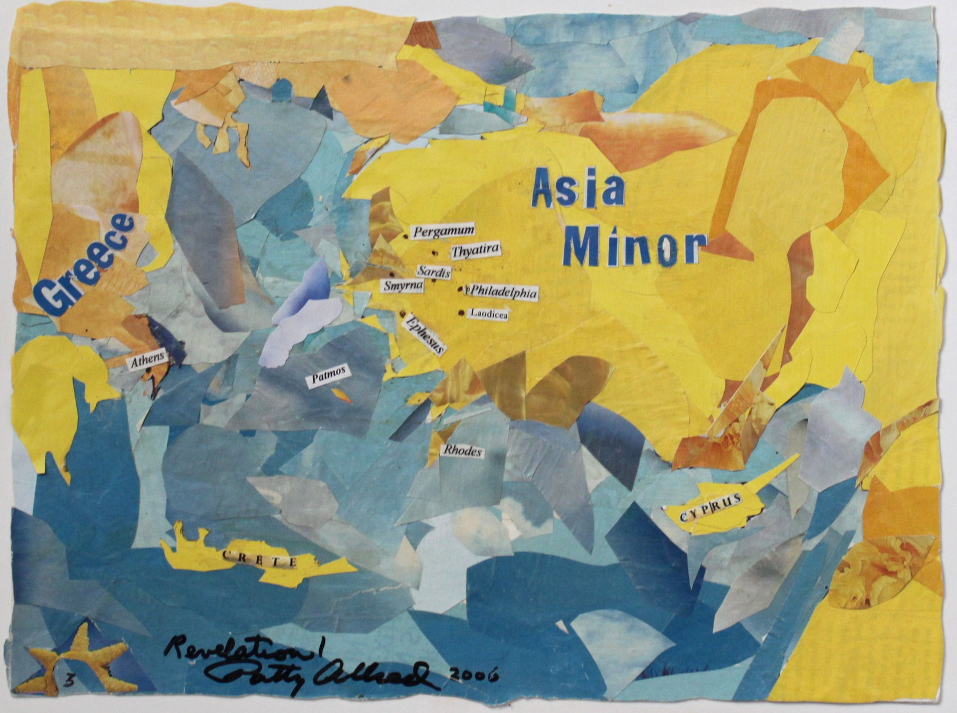 On this site we highlight the collage art of Patricia (Patty) Allred (1934-2009) illustrating scenes in the Book of Revelation, by the Apostle John, which is the last book in the New Testament of the Holy Bible. To make the presentation more complete we reference art from other sources where appropriate and available.
