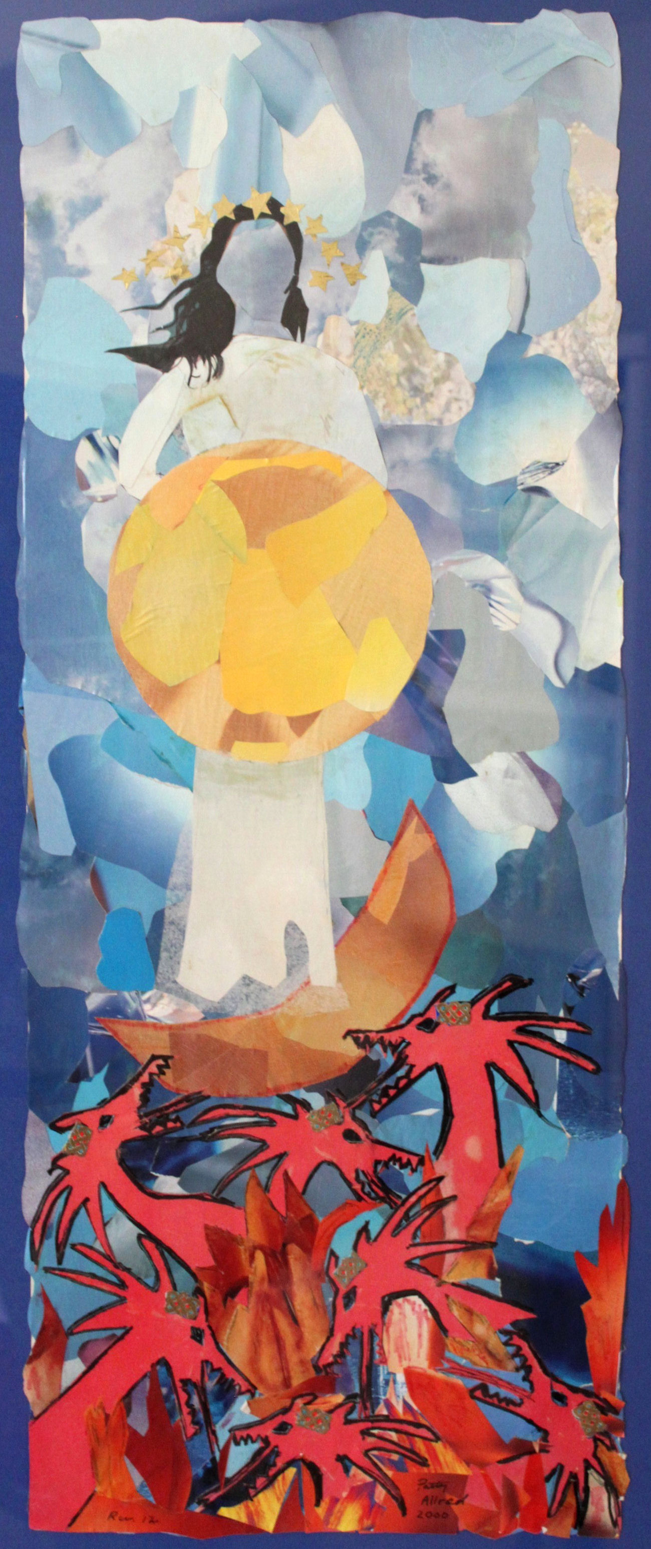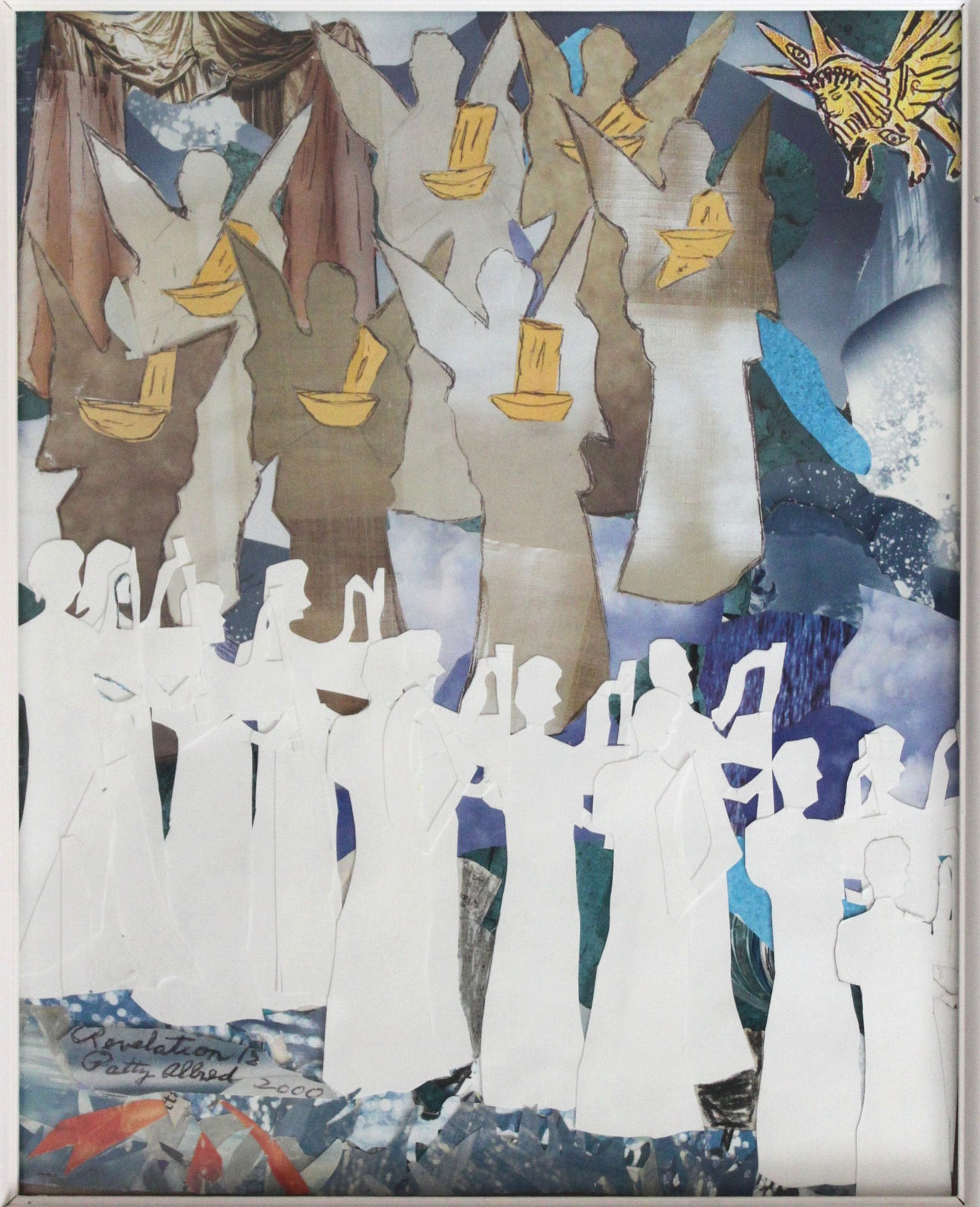 On this site we highlight the collage art of Patricia (Patty) Allred (1934-2009) illustrating scenes in the Book of Revelation, by the Apostle John, which is the last book in the New Testament of the Holy Bible. To make the presentation more complete we reference art from other sources where appropriate and available. To see the art, just SCROLL DOWN.